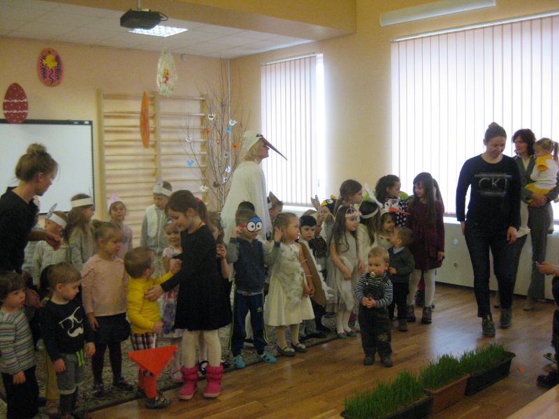Antradienio popietę, į pavasariškai papuoštą salę, pasidžiaugti Velykomis susirinko Avižienių vaikų lopšelio-darželio „Smalsučių“, „Bitučių“ ir „Boružėlių“ grupių ugdytiniai, jų tėveliai, seneliai, broliukai ir sesutės. Visų grupių vaikučiai buvo persirengę pavasarį ir Velykas simbolizuojančiais personažais: čia cypsėjo viščiukai, striksėjo kiškiai, čiulbėjo paukšteliai.